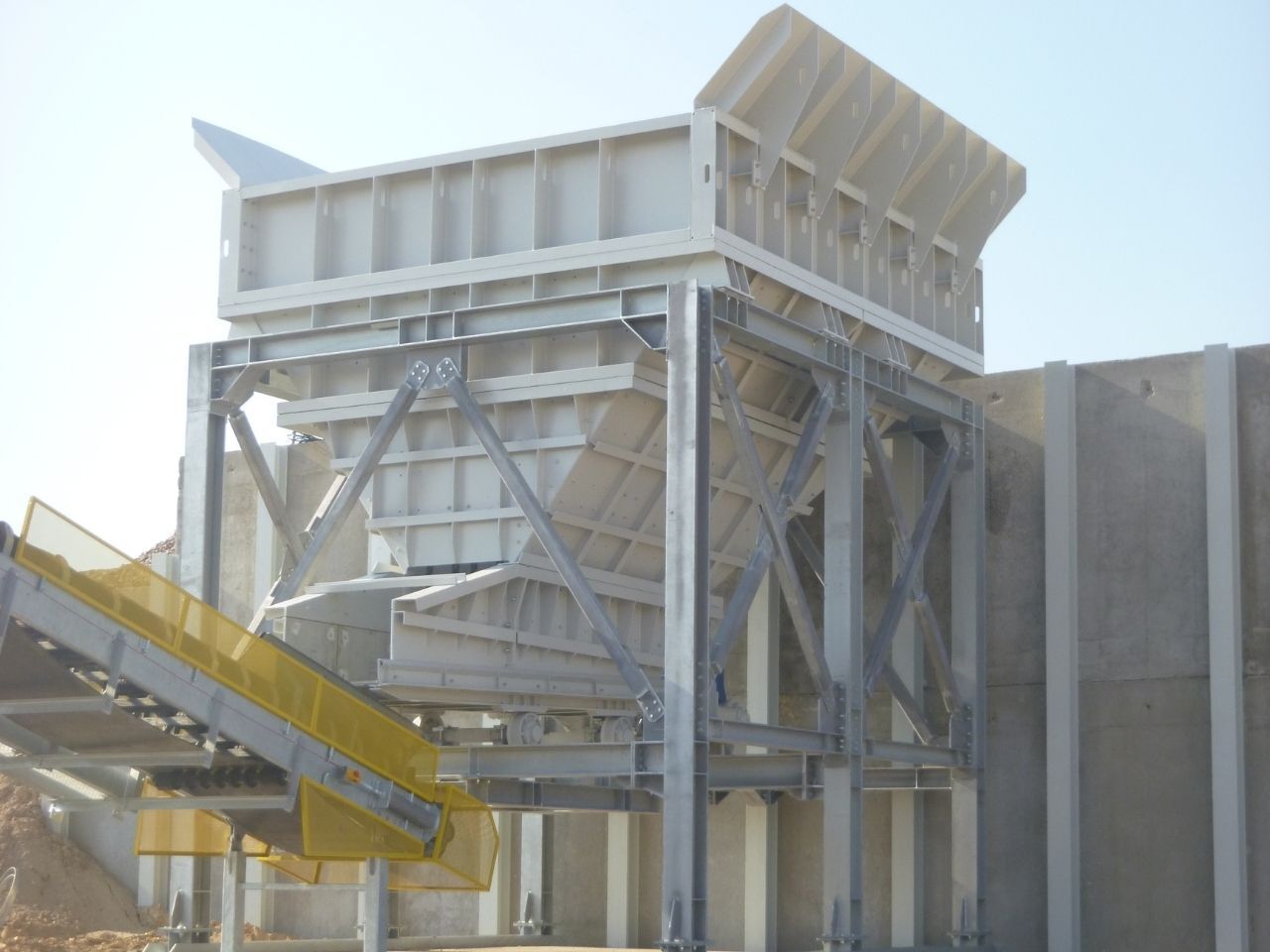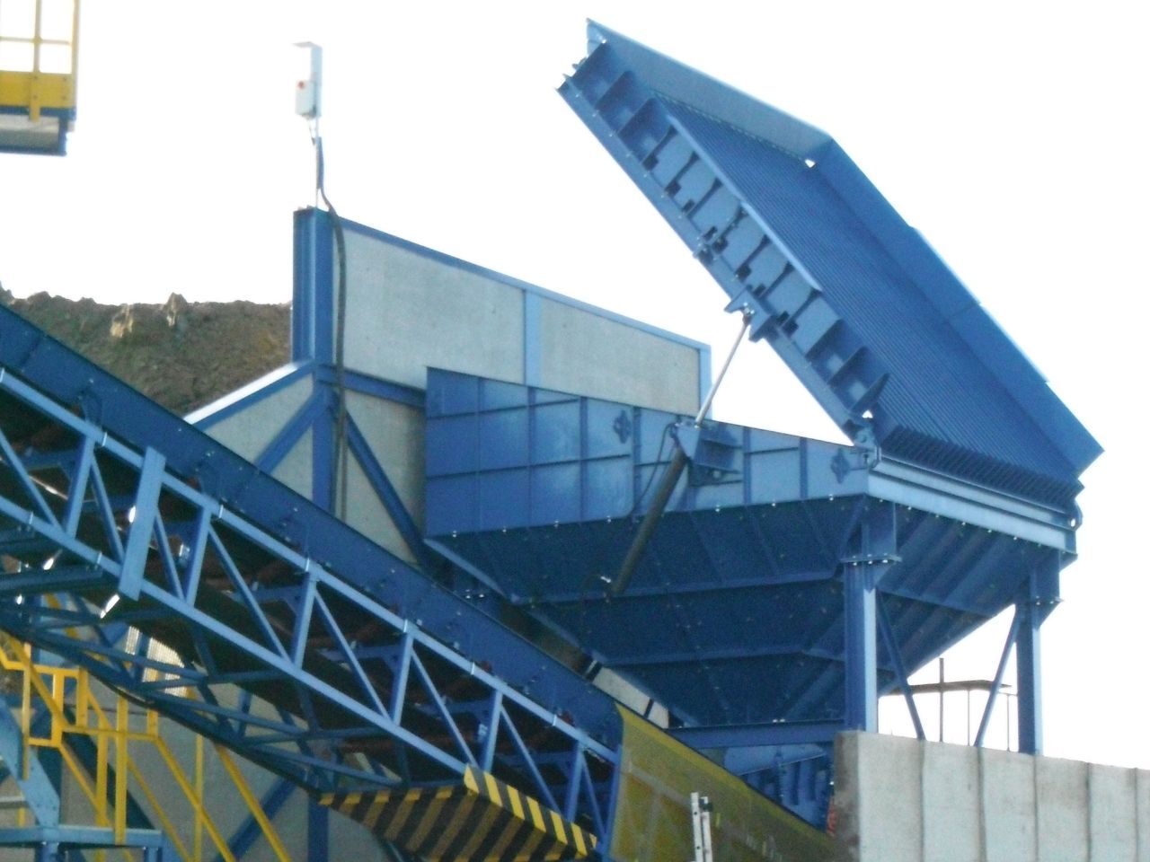 - kosze zasypowe z hydrauliczną kratą/rusztem do odrzucania nadgabarytów
